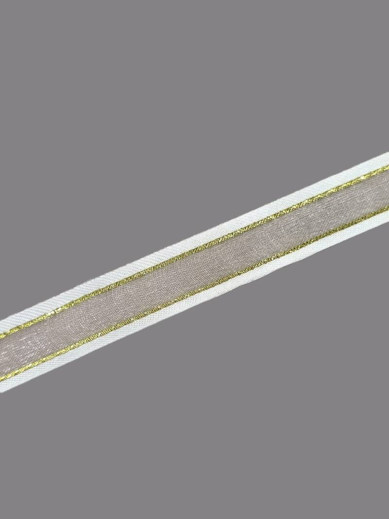 Taśma szyfon ecru ze złotym szer.1,5cm